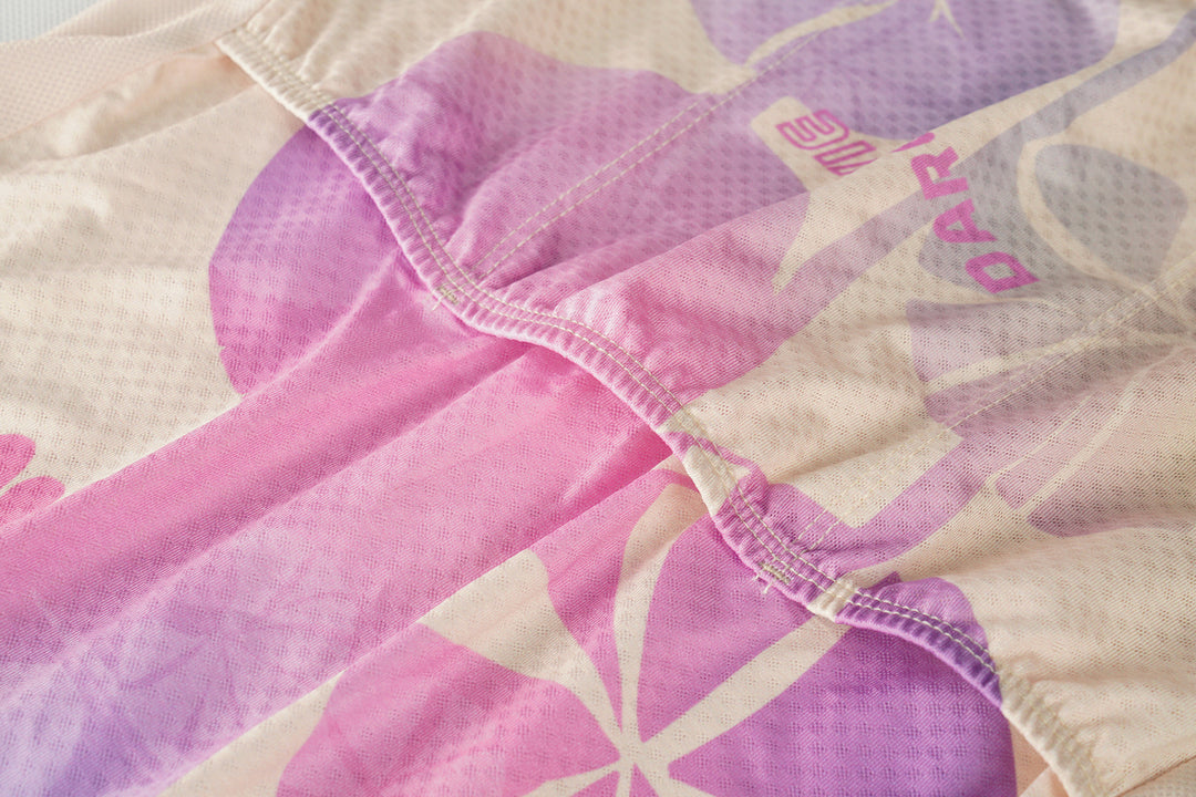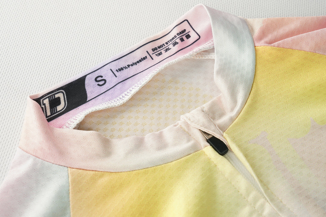 The Dandelion Breeze Women’s Cycling Jersey combines lightweight performance with ergonomic design, tailored for summer endurance rides on both road and mountain terrain. Crafted from Sakura-pattern mesh with breathable hexagonal holes and spy-hole mesh panels, the fabric delivers exceptional ventilation, moisture-wicking efficiency, and abrasion resistance, keeping riders cool and dry during high-intensity efforts. A slim-fit cut with high elasticity provides a body-hugging yet comfortable fit, supported by a dual-hem system: a 4.5cm silicone gripper on the front for stability and a 2cm elastic band on the rear to contour the body without bounce. The non-sag three-pocket rear design features reinforced inner patches at the seams, ensuring reliable storage even when loaded. Finished with a white SBS concealed-tooth zipper, reflective side strips for visibility, and weighing just 150–200g, this colorful jersey balances style, durability, and performance—a versatile choice for female cyclists seeking comfort and speed in summer conditions.