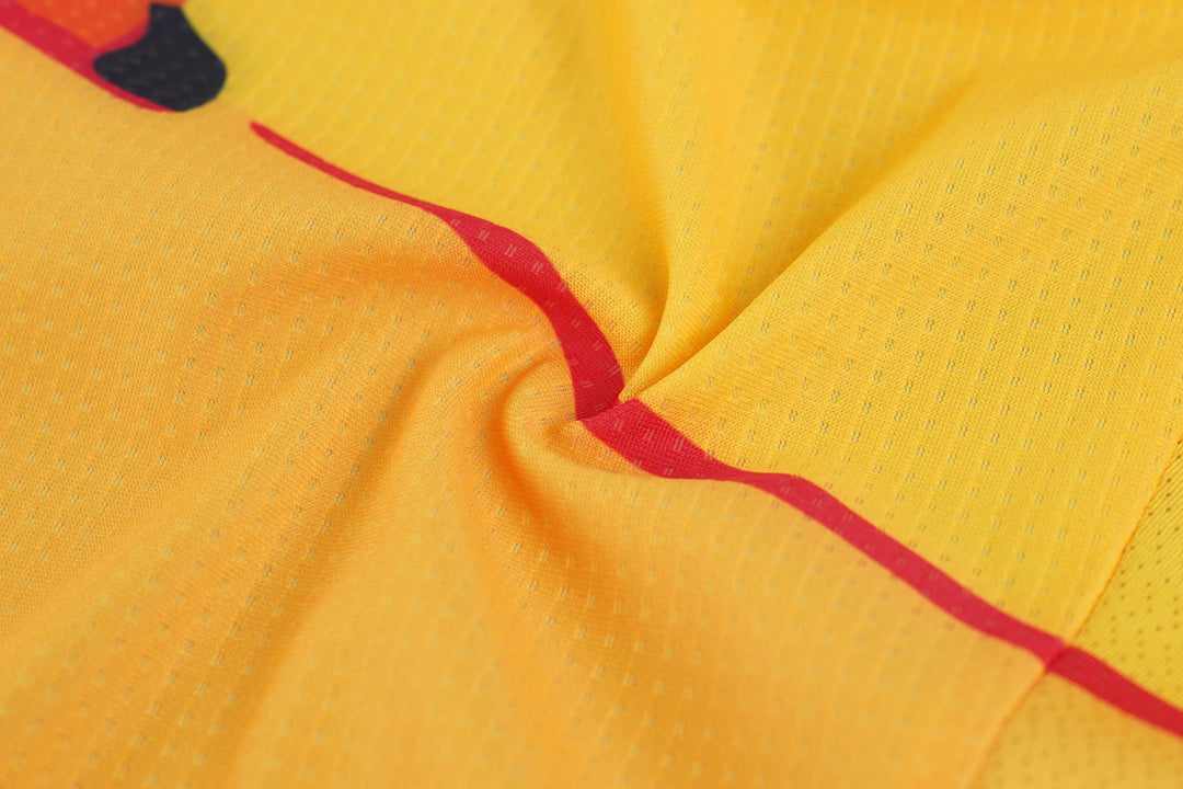 Professional quick-dry cycling jersey made from high-stretch jacquard fabric for ultimate comfort and moisture-wicking properties to maintain peak performance on the ride.