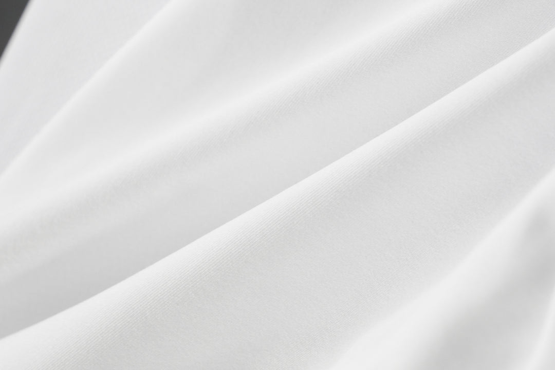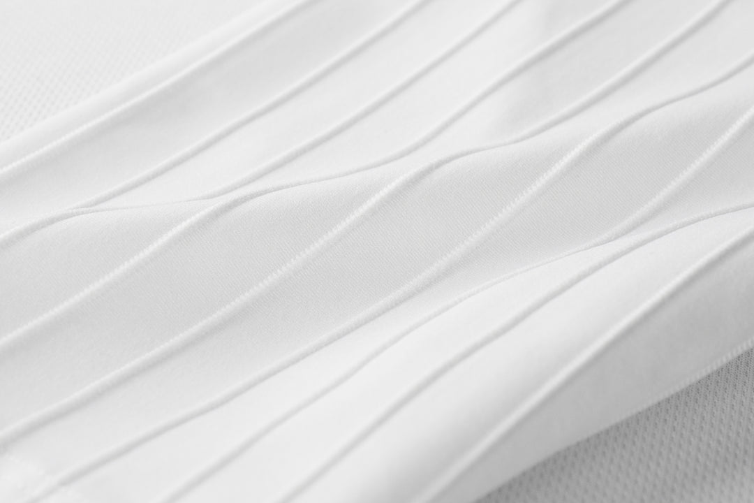 Material Upper Body: Recycled matte polyester-spandex (86% Polyester, 14% Spandex); Sleeve: White striped fabric (92% Polyester, 8% Spandex); Lower Body: Double-sided white stretch fabric (78% Polyester, 22% Spandex)