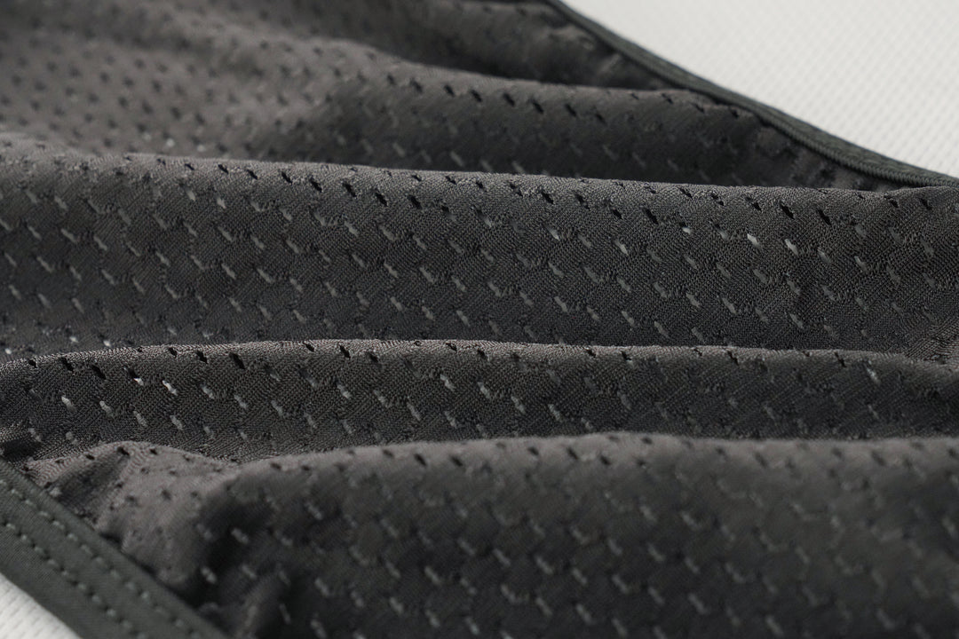 A one-piece breathable mesh fabric connects the shoulder straps to the back for a comfortable, close-fitting fit without restricting the body.